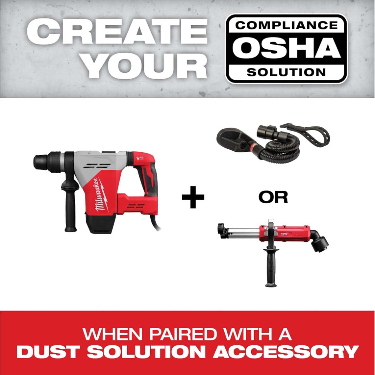 Our 1-9/16” SDS MAX Rotary Hammer is designed for all-day concrete drilling and chipping. The powerful 14A Motor delivers 5.6 ft-lbs of impact energy for demanding applications in any orientation. Our AVS Anti-Vibration System is designed to reduce vibration, limit fatigue, and increase jobsite productivity. This rotary hammer offers maximum versatility with two-mode operation and 12-position chisel rotation, while a mechanical clutch provides protection in a bind-up. Our 1-9/16” SDS MAX Rotary Hammer delivers the power needed to complete a variety of applications when power is readily available.