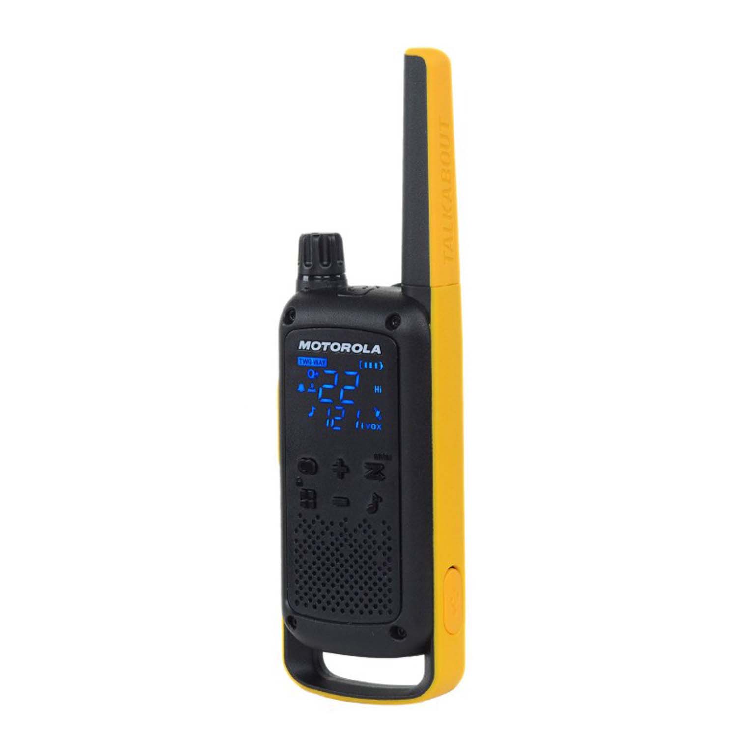 • The hidden LED display on the TALKABOUT T470 radios turns on to deliver the information you need, only when you need it. You’ll only see the icons you are using, which makes calling that much simpler. And, when you’re not using your radio, the display is hidden. The result is a clean and sophisticated design that you’ll love at first sight.