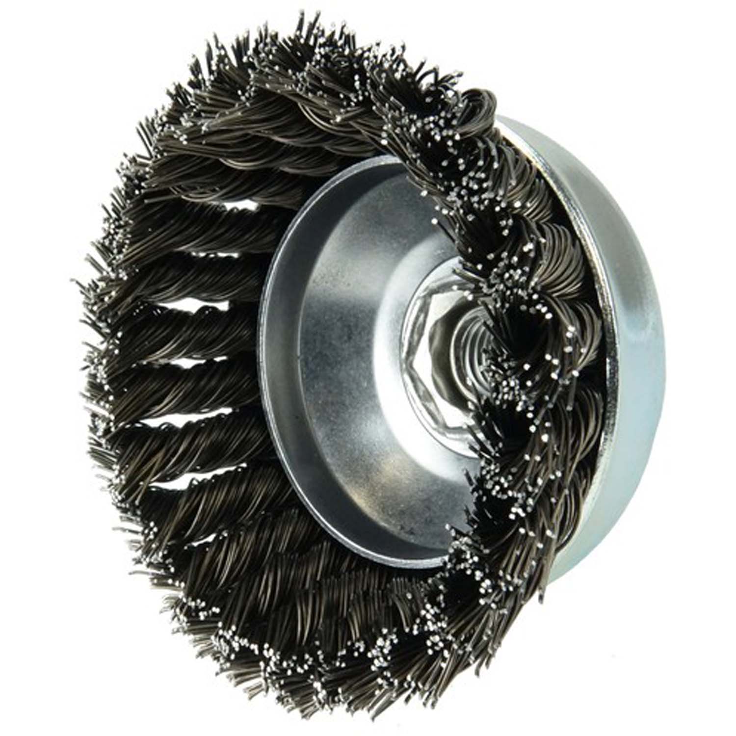 Knot Wire Cup Brush provides an aggressive brushing action for general-purpose surface cleaning applications.
