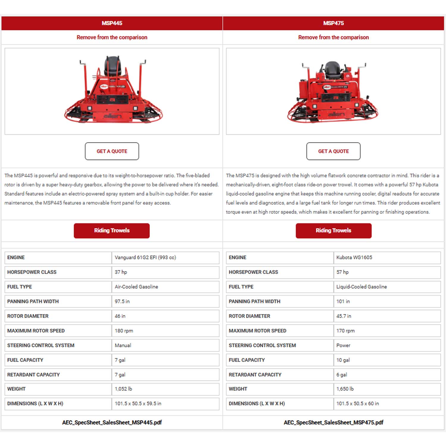 The MSP475 is designed with the high volume flatwork concrete contractor in mind. This rider is a mechanically-driven, eight-foot class ride-on power trowel. It comes with a powerful 57 hp Kubota liquid-cooled gasoline engine that keeps this machine running cooler, digital readouts for accurate fuel levels and diagnostics, and a large fuel tank for longer run times. This rider produces excellent torque even at high rotor speeds, which makes it excellent for panning or finishing operations.