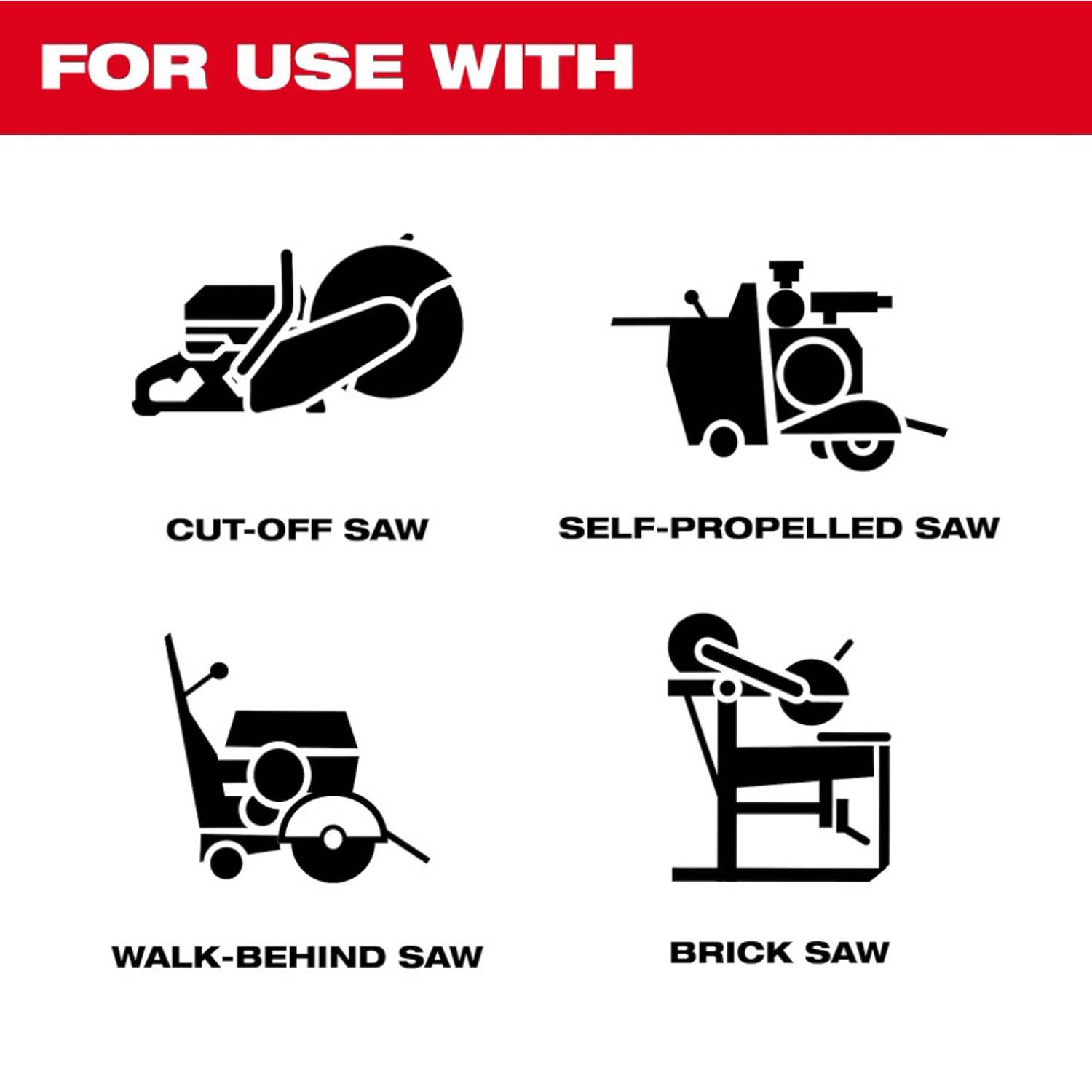 - For Use With Cut Off Saws, Brick Saws, Walk Behind Masonry Saws, and Self Propelled Masonry Saws