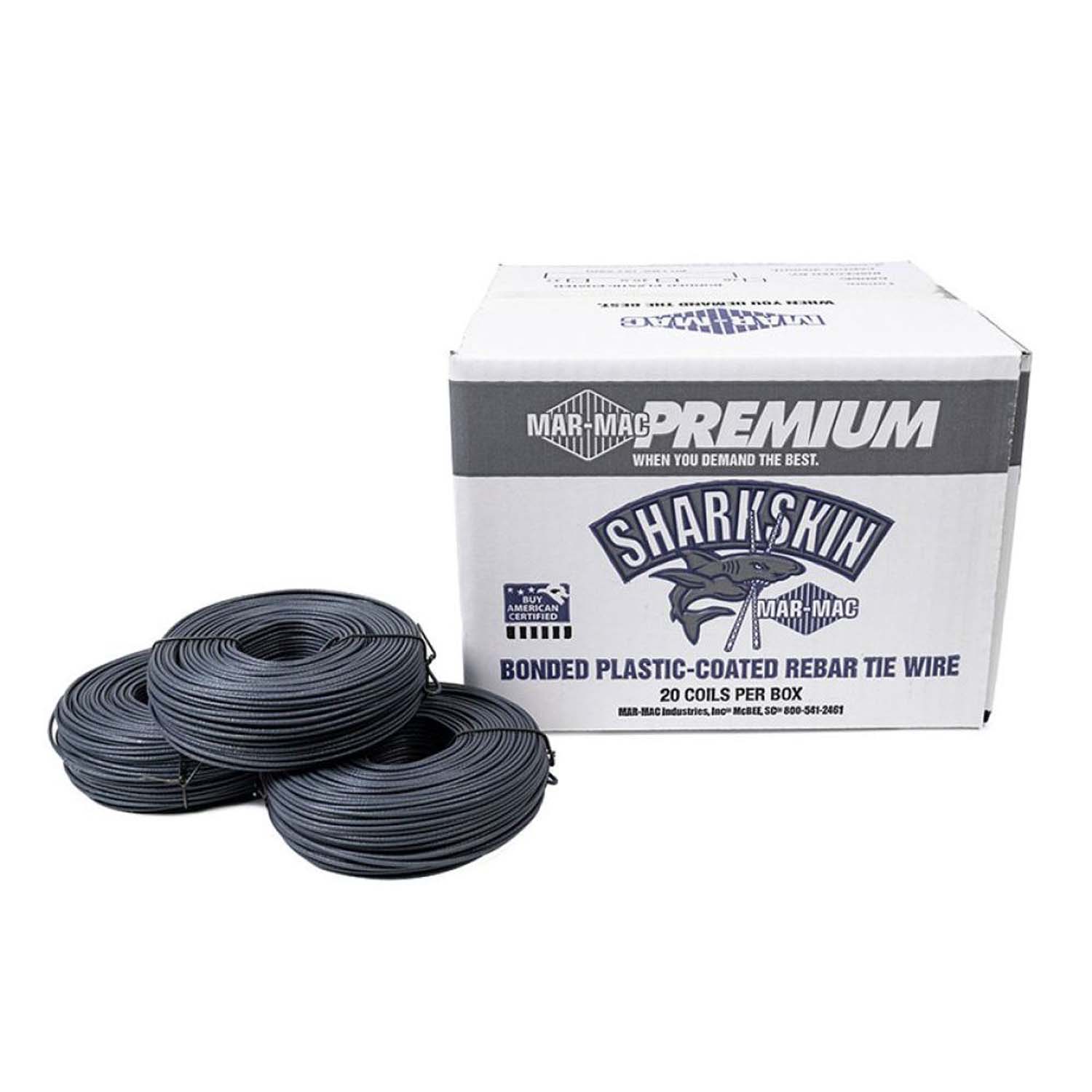 - Standard Requirements: Mar-Mac Industries, Inc. Premium Plastic Coated Coil Wire is drawn, annealed, coated, coiled, and packaged in the USA and complies with “Buy American” and “Buy America” standards. Mar-Mac Industries, Inc. Premium Plastic Coated Coil Wire conforms to the ASTM A853 specification and to the ASTM A775 specification, appendix section X1.3.13. (The AASHTO designation M-284M/M 284 has been superseded by ASTM A775). Mar-Mac Industries, Inc. Premium Plastic Coated Coil Wire also conforms to the requirements of “American Iron and Steel (AIS)” as outlined in provisions P.L. 113-76, the Consolidated Appropriations Act, 2014 and also conforms to the requirements of Division A, Title VII, Section 746 of the Consolidated Appropriations Act of 2017.