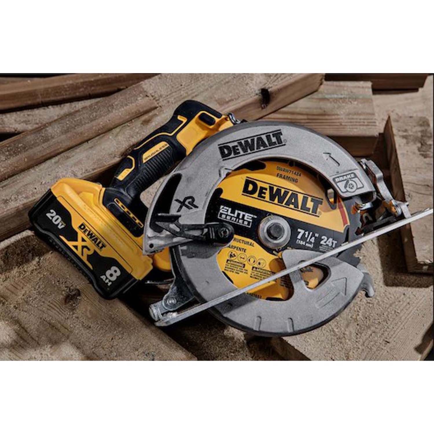 With up to twice the life of the Diablo® D0724R 7-1/4 in. 24T Saw Blade in double-stacked 3/4 in. x 48 in. Particle Board in a lab test*, you can be sure you have the right tools for heavy-duty projects with 7-1/4 in. 24T DEWALT ELITE SERIES™ Circular Saw Blades.The blades are built for long-term use with proprietary welded carbide tips and a multi-tooth design that deliver smooth cutting and durability. Designed for endurance, these blades feature large heat vents to allow for cool, seamless cuts.
