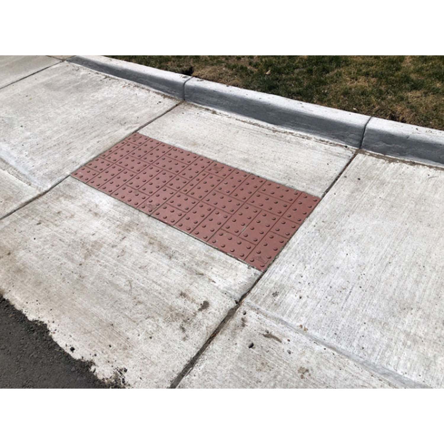 ADA Solutions’ Heritage Brick Cast-in-Place Paver provides long-term durability with the classic appeal of brick. Suited for new construction and modified curb ramps, these truncated dome pavers provide the highest levels of weather and wear resistance while providing an upscale appearance that elevates the streetscape design. The homogeneous glass and carbon composite material is colorfast and UV stable, while integrated fiberglass truncated domes allow for a more durable tactile surface.