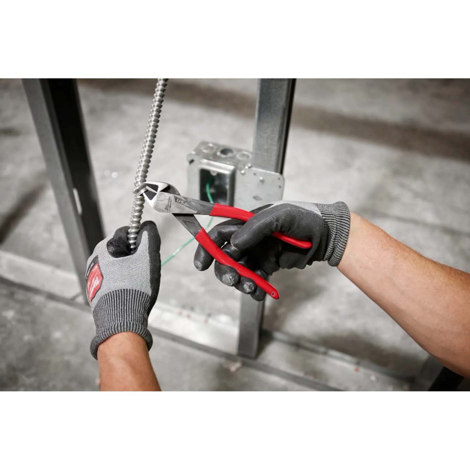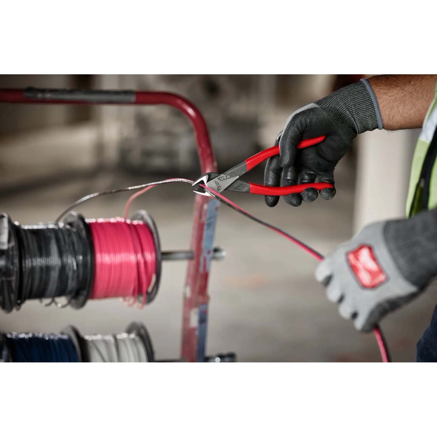 Our Milwaukee® Diagonal Cutting Pliers (USA) deliver the easiest cuts and a lasting edge for the professional user. Our pliers are designed with an optimized pivot point to provide the best leverage for tough cuts through materials like wires, screws, and other common hardware. Our diagonal cutting pliers deliver the confidence of a long cut life with a laser-hardened edge. Our diagonal cutting pliers are engineered to deliver the smoothest open and close experience from the start, with no break-in period required. The pliers are tether ready and offered in both dipped grip with a split-ring hole and comfort grip with a lanyard hole. Our Diagonal Cutting Pliers are available in sizes of 6-inch, 7-inch, and 8-inch. Our Milwaukee Diagonal Cutting Pliers are made in USA with best-in-class manufacturing technology and USA-sourced materials, including durable, press-forged steel, and are backed by a complete Lifetime Guarantee.
