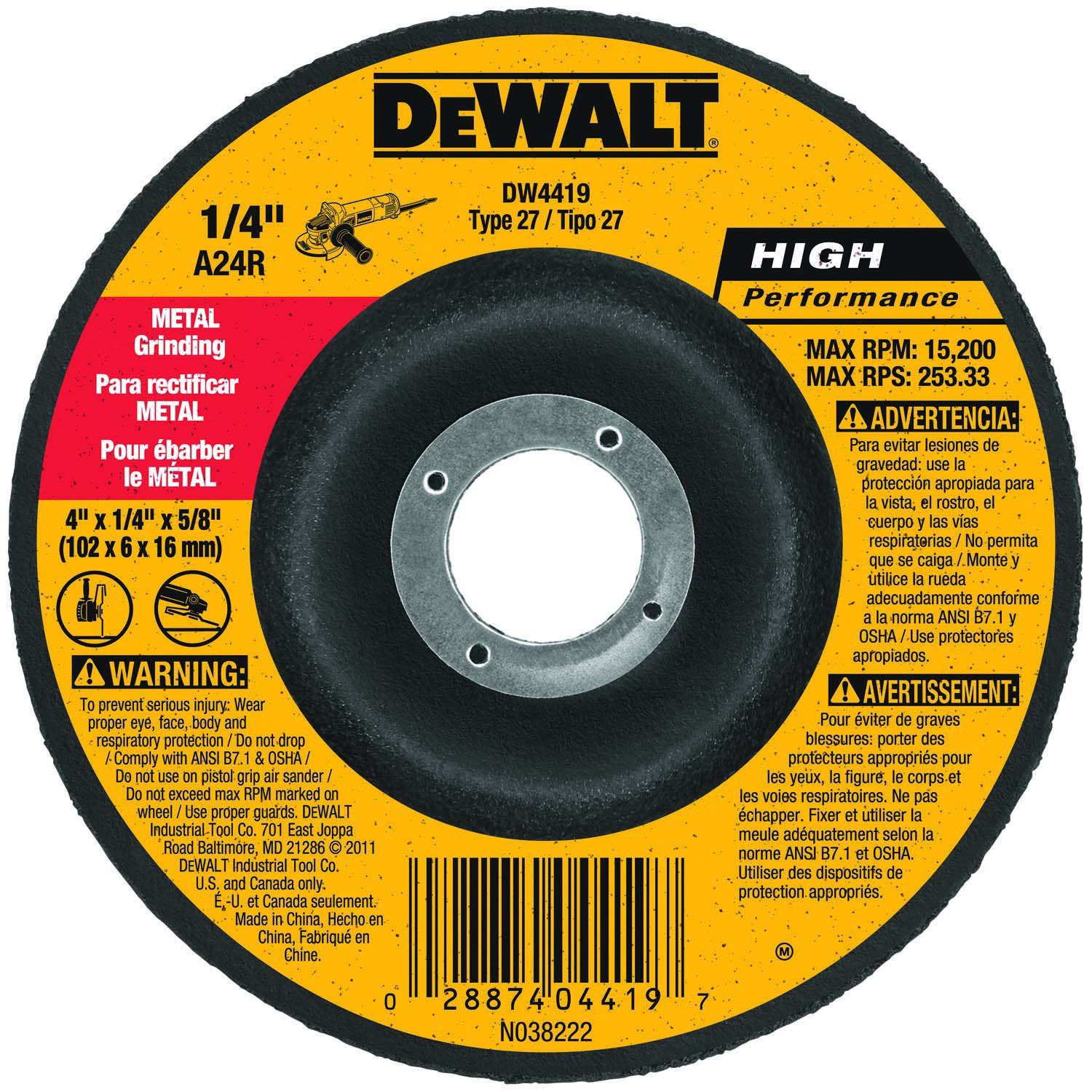Crafted from high-performance aluminum oxide grain for durability and optimal material removal, DEWALT Type 27 HP Metal Grinding Wheels grind and shape a variety of metals and non-ferrous materials. High grain concentration for aggressive grinding action and smooth-running wheels.
