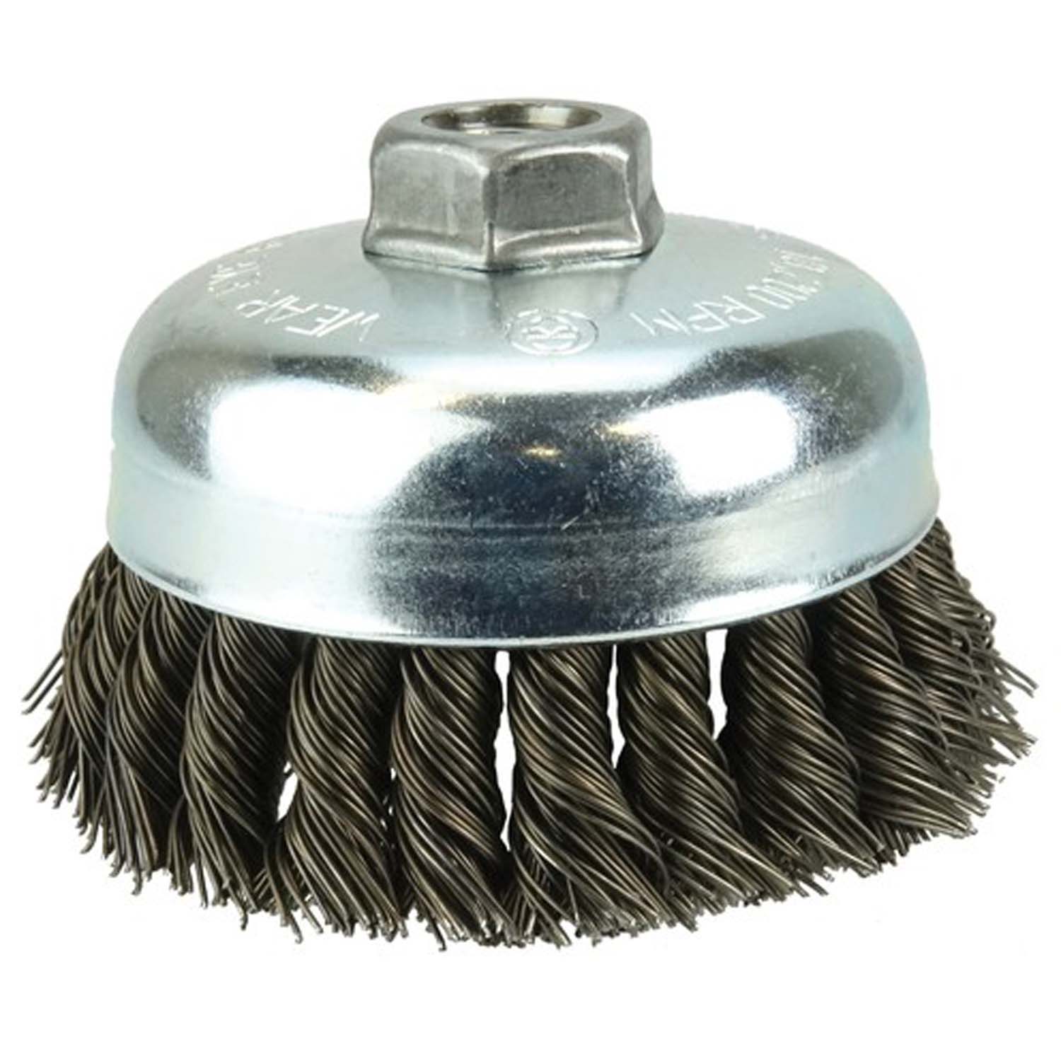 Knot Wire Cup Brush provides an aggressive brushing action for general-purpose surface cleaning applications.