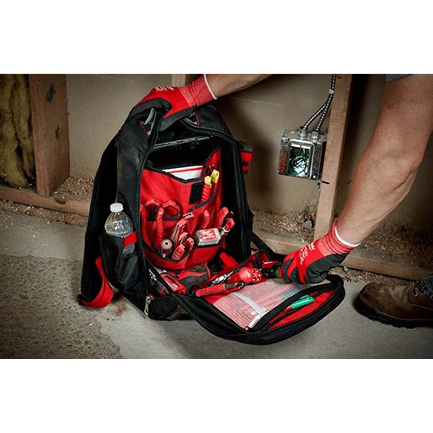 The Low-Profile Backpack is durable with a low profile design. The backpack is constructed of 1680D ballistic material and rugged metal zippers providing unmatched durability for a longer life. With 22 pockets including a padded electronic sleeve, the backpack provides ultimate organization. The padded and breathable load-bearing harness evenly distributes the weight for unsurpassed comfort and jobsite performance with 2x more padding than competitive units.