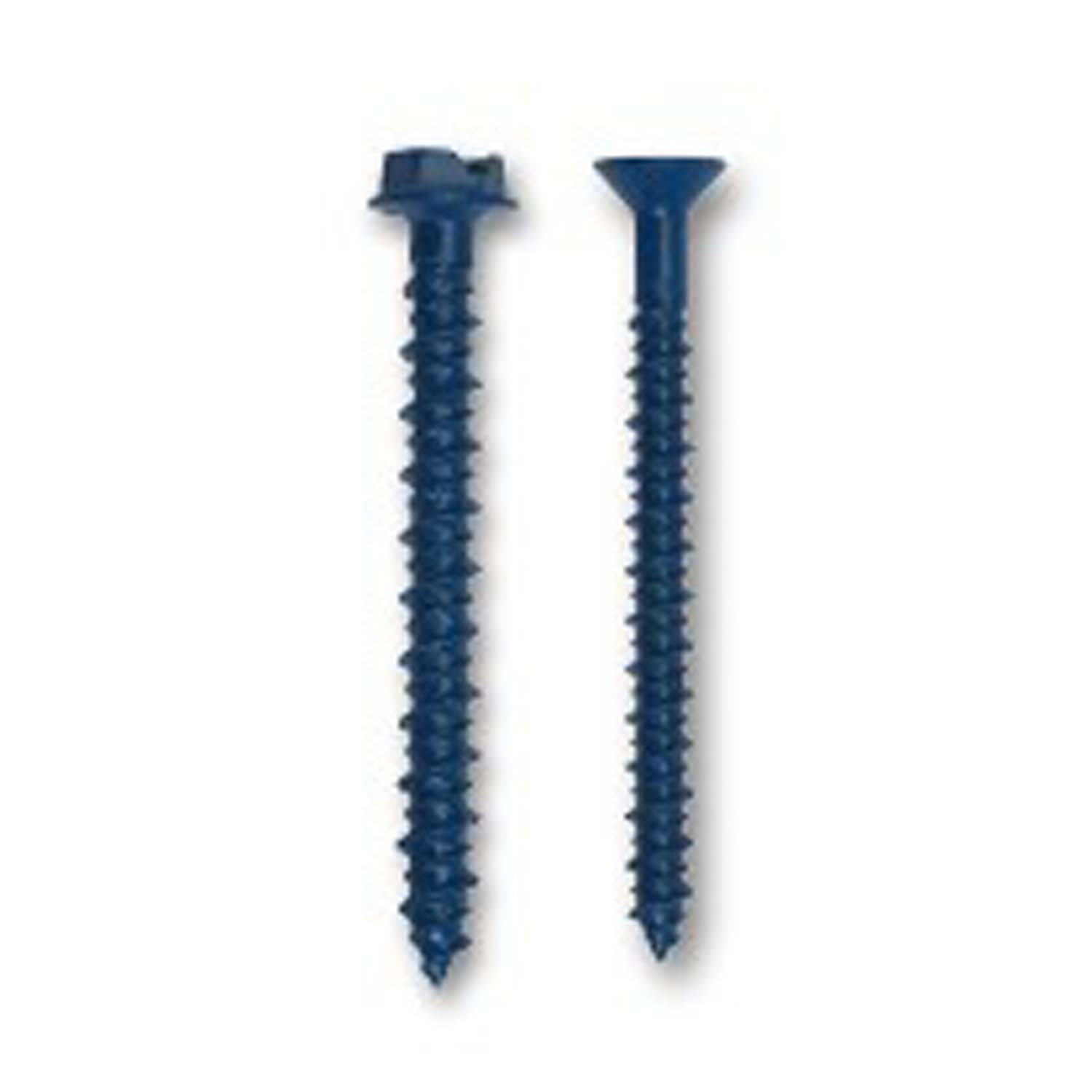 The UltraCon+ fastening system is a complete family of screw anchors for light to medium duty applications in concrete, masonry block, brick, and wood base materials. The UltraCon+ is fast and easy to install and provides a neat, finished appearance. The UltraCon+ screw anchor is engineered with matched tolerance drill bits and installation tools designed to meet the needs of the user and also provide optimum performance. The UltraCon+ features a gimlet point for selfdrilling into wood base materials without pre-drilling. The UltraCon+ screw anchor is available in carbon steel with a Stalgard coating in several colors. Head styles include a slotted hex washer head, Phillips flat head, Phillips Trimfit flat head and Hex flange head.